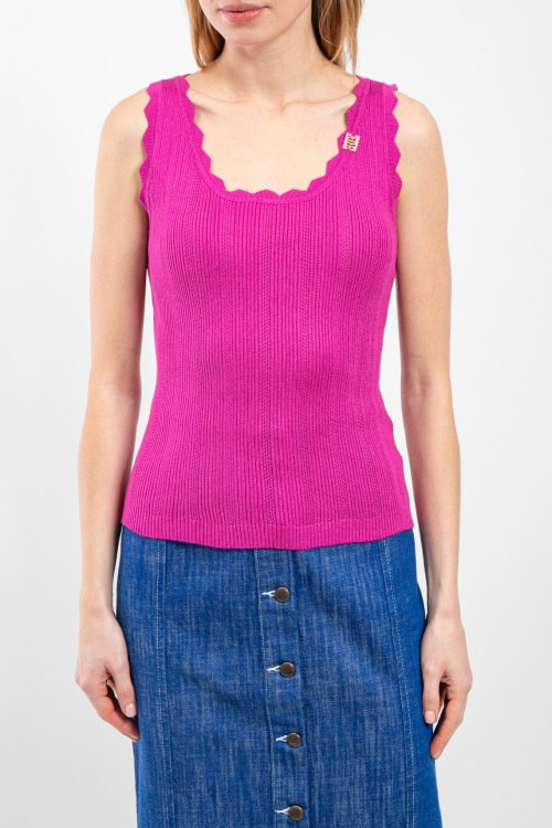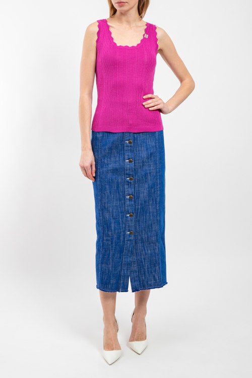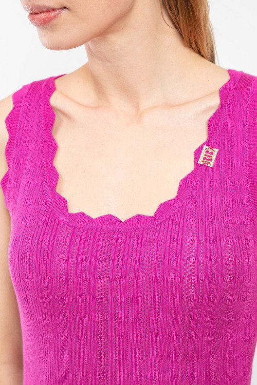 Детали: Женский топ из вискозы и хлопка цвета фуксии от Roberta Biagi (Роберта Бьяджи). Дизайн в рубчик, круглый вырез, нашивка с логотипом, классическая длина. Размер вещи на фото:Uni. Замеры: длина: 53 см, ширина по груди: 34 см, ширина по талии: 30,5 см