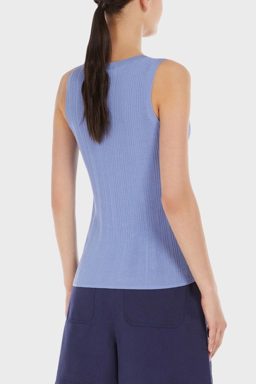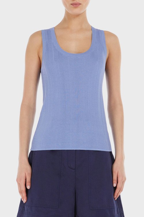 Детали: Женский голубой топ Ceylon из вискозного микса от Max Mara Weekend (Макс Мара Викенд). Круглый вырез горловины, без рукавов, классическая длина