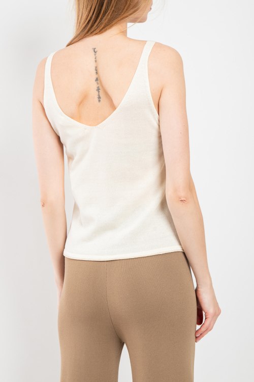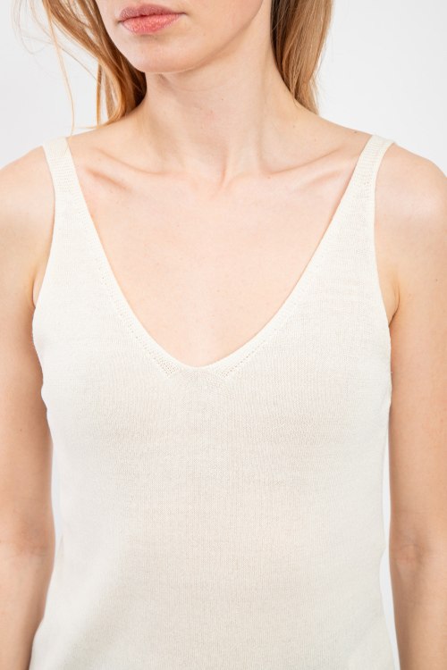 Детали: Женский топ молочного оттенка из вискозного микса от Kocca (Кокка). Классическая длина, V-образный вырез декольте и на спине, без рукавов