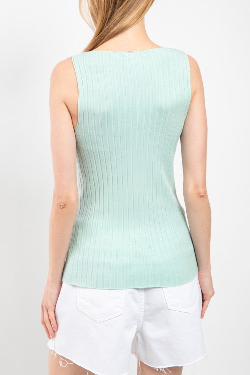 Женский мятный топ из вискозы от Vicolo (Виколо). Модель без рукавов, V-образный вырез, дизайн в рубчик, классическая длина. Замеры для размера UNI: Длина: 60,5см, ширина по груди: 30 см, ширина по талии: 28 см.