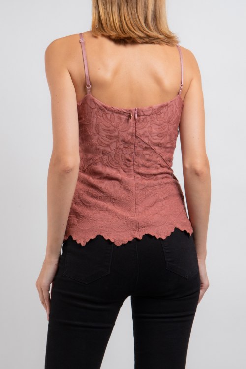 Женский темно-розовый топ из микса вискозы и натурального хлопка от Nana Nucci (Нана Нуччи). Модель без рукавов, приталенный крой, тонкие регулируемые бретели. Рельефный низ, круглый вырез на декольте. Декорирован кружевом в тон изделия.