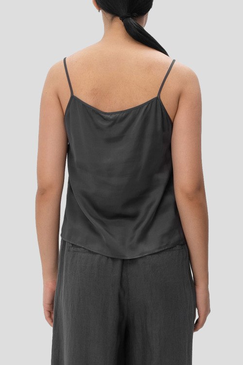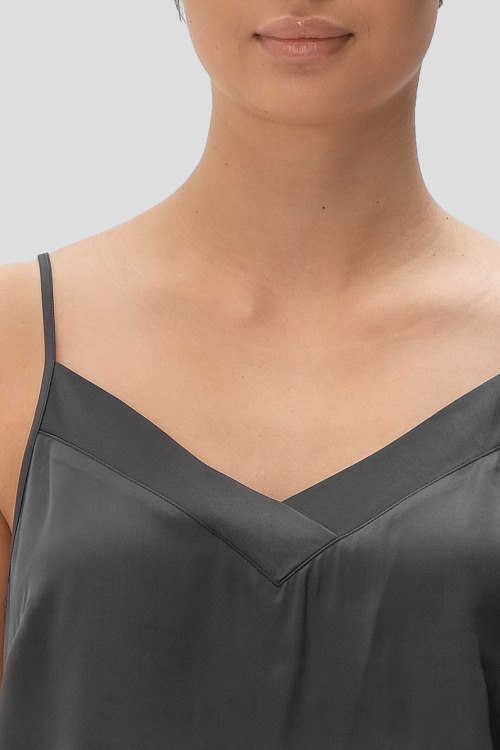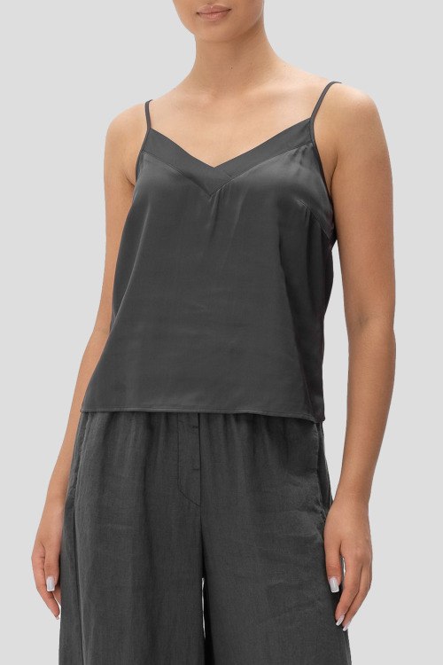 Детали: Женский темно-серый топ из вискозы от Cappellini (Каппеллини). Модель на тонких бретельках, V-образное декольте, классическая длина