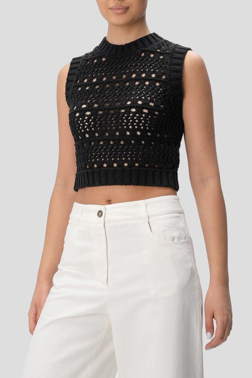 Детали: Женский темно-синий топ из хлопка от Peserico (Пезерико). Укороченный топ, перфорированный дизайн, круглый вырез горловины, без рукавов