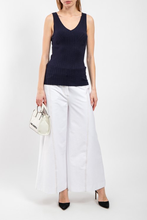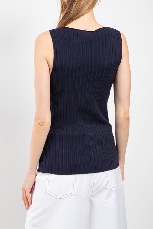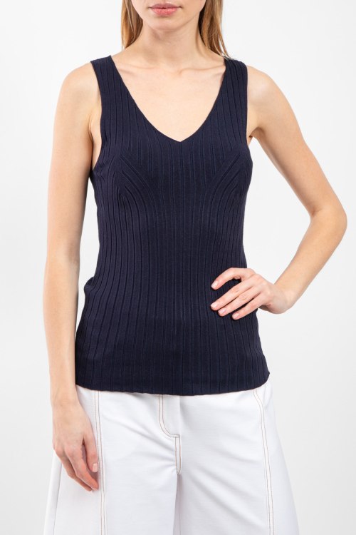 Детали: Женский темно-синий топ из вискозы от Vicolo (Виколо). Модель без рукавов, V-образный вырез, дизайн в рубчик, классическая длина. Размер вещи на фото:Uni. Замеры: длина: 60,5см, ширина по груди: 30 см, ширина по талии: 28 см