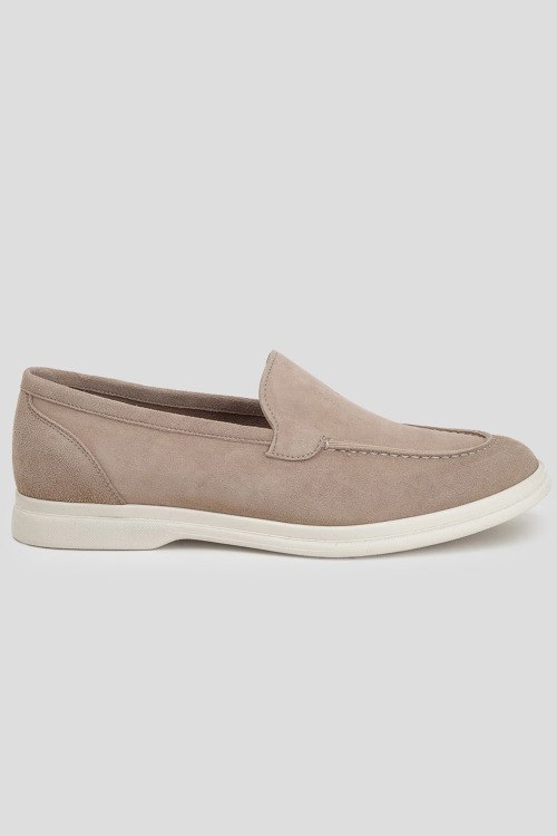 Детали: Женские бежевые лоферы из натуральной замши от Brecos (Брекоз). Миндалевидный носок, кожаная стелька с логотипом бренда, контрастная подошва