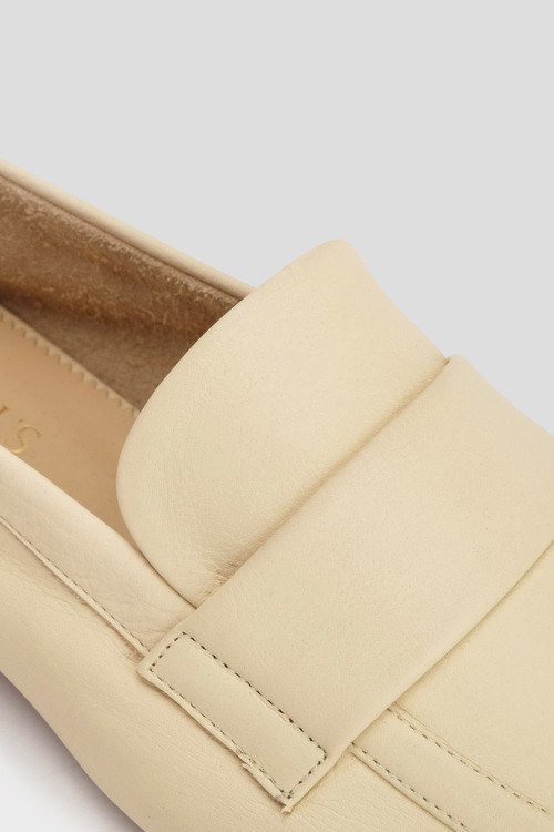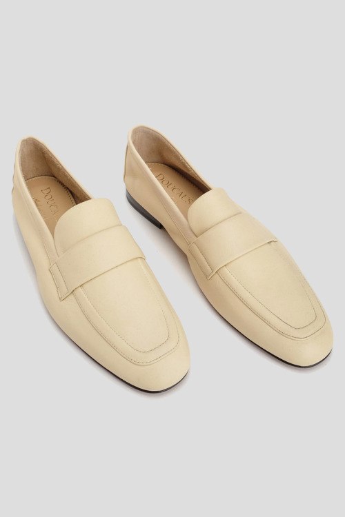 Детали: Женские кожаные лоферы молочного оттенка от Doucal's (Дукалс). Модель без застежки, миндалевидный носок, тональная строчка, плоская подошва, блочный каблук, кожаная стелька с логотипом