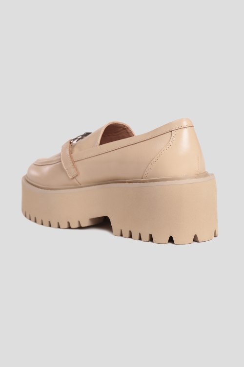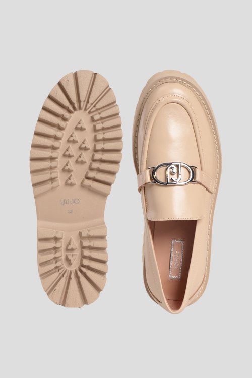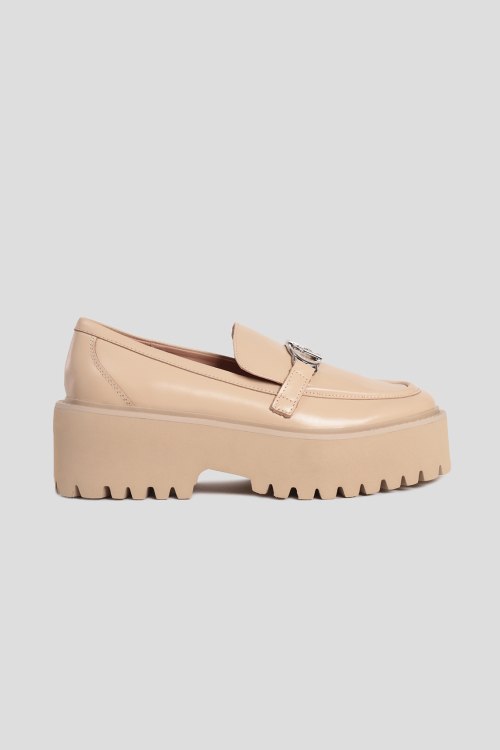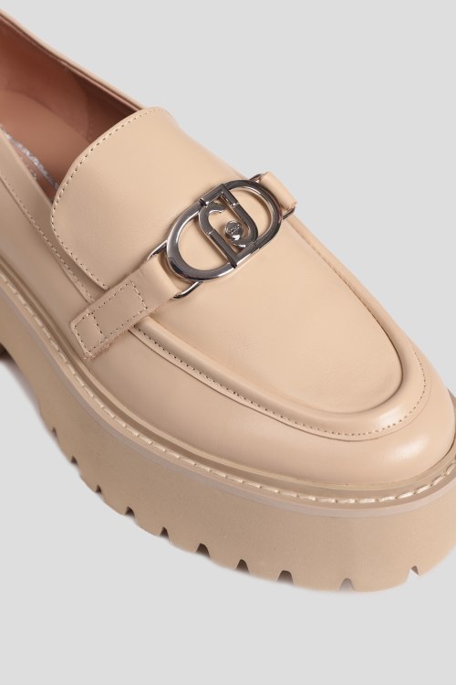 Детали: Женские бежевые кожаные лоферы от Liu Jo (Лиу Джо). Модель из гладкой кожи, металлический значок с логотипом, закругленный носок, массивная подошва, кожаная стелька. Высота каблука: 6.5 см, платформа: 4.5 см