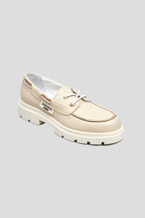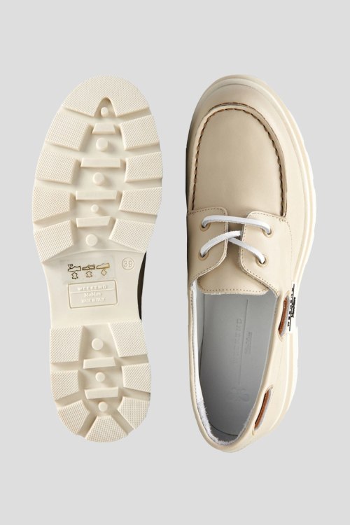 Детали: Женские бежевые лоферы из натуральной кожи от Max Mara (Макс Мара). Закругленный носок, спереди шнуровка, тракторная подошва