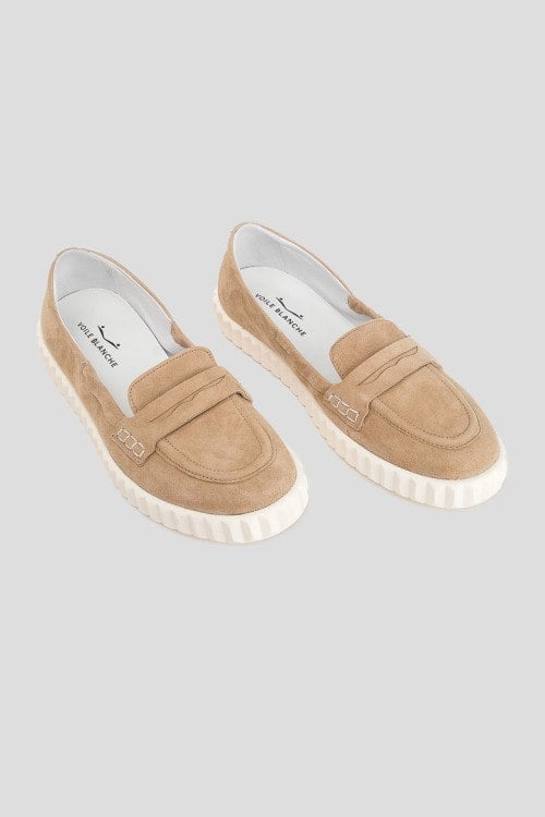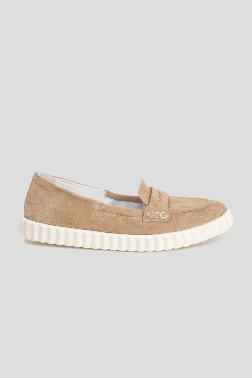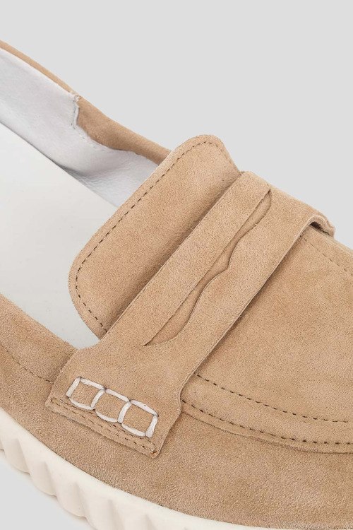 Детали: Женские бежевые замшевые лоферы от Voile Blanche (Вуаль Бланш). Тональная строчка, закругленный носок, белая подошва