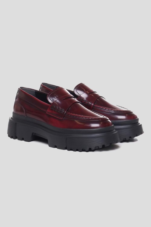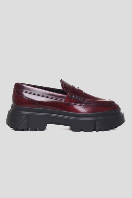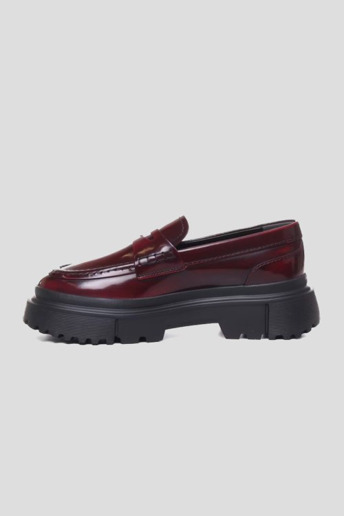 Детали: Женские бордовые кожаные лоферы от Hogan (Хоган). Модель из гладкой кожи, классический дизайн, закругленный носок, массивная подошва