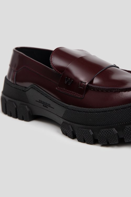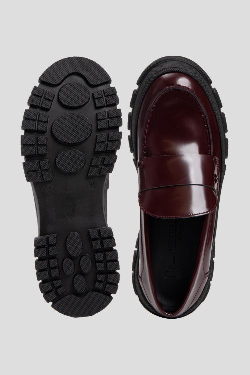 Детали: Женские бордовые лоферы из лаковой кожи от Max Mara (Макс Мара). Закругленный носок, массивная подошва контрастного цвета, кожаная стелька