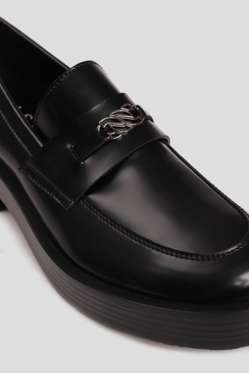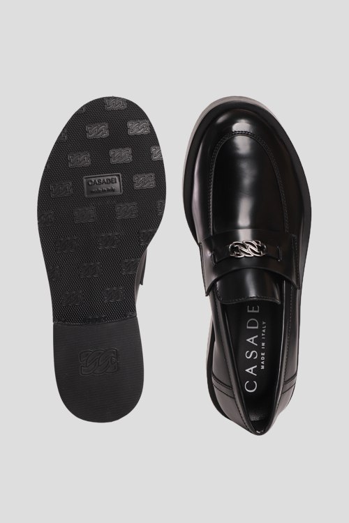 Детали: Женские черные кожаные лоферы от Casadei (Касадей). Модель из гладкой кожи, металлический декор, закругленный носок, кожаная стелька. Высота каблука: 4 см, платформа: 2 см