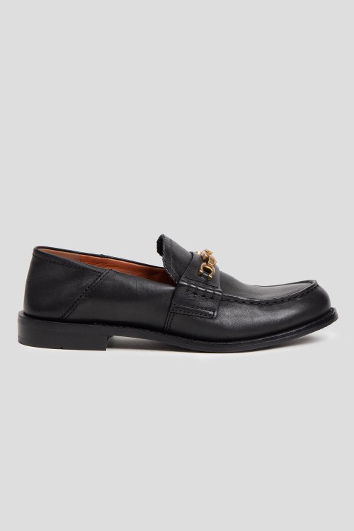 Детали: Женские черные кожаные лоферы от Coach (Коуч). Модель из гладкой кожи, золотистая фурнитура, закругленный носок, кожаная стелька