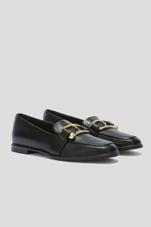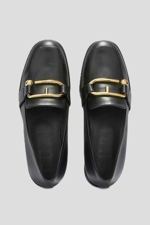 Детали: Женские черные кожаные лоферы Nuvola от Furla (Фурла). Модель из гладкой кожи, золотистая фурнитура, закругленный носок, кожаная стелька