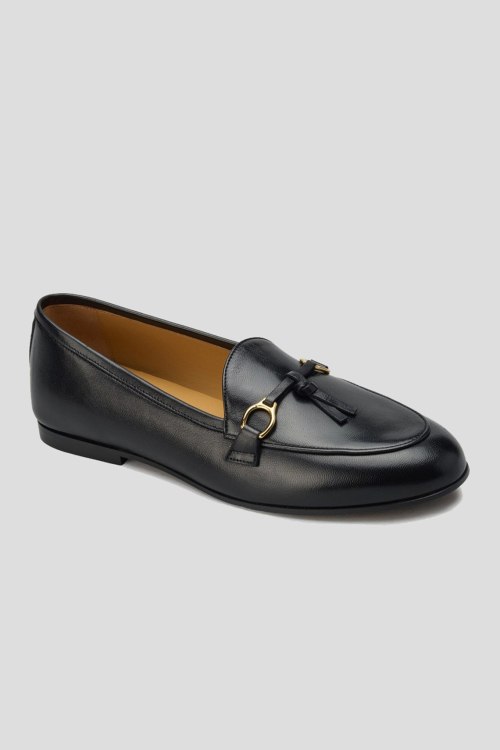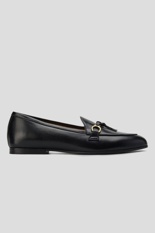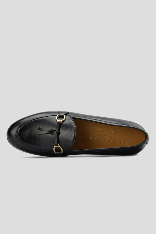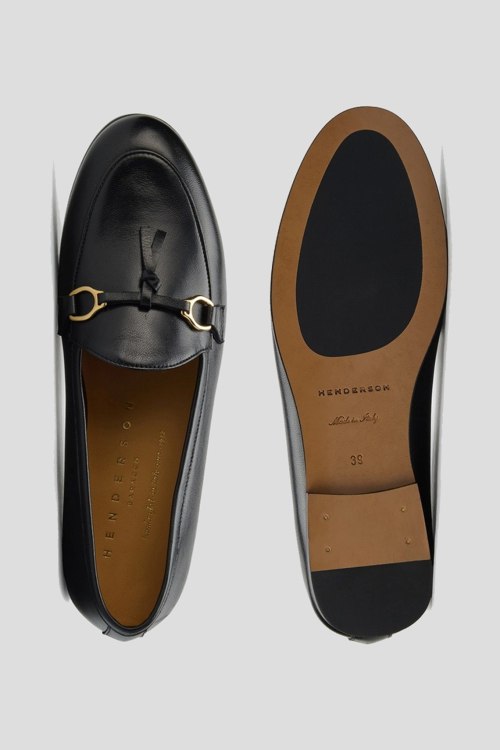 Детали: Женские черные кожаные лоферы от Henderson Baracco (Хендерсон Баракко). Модель из гладкой кожи, золотистая фурнитура, миндалевидный носок, кожаная стелька