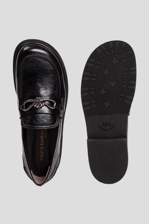 Детали: Женские черные кожаные лоферы от Laura Bellariva (Лаура Белларива). Серебристая фурнитура, закругленный носок, кожаная стелька