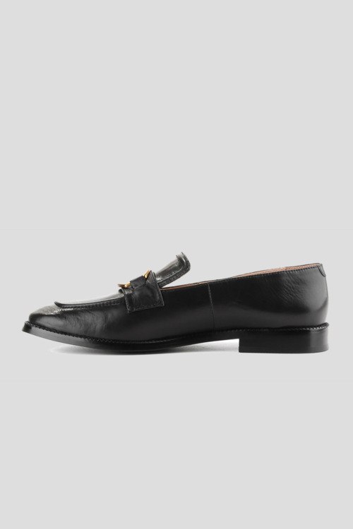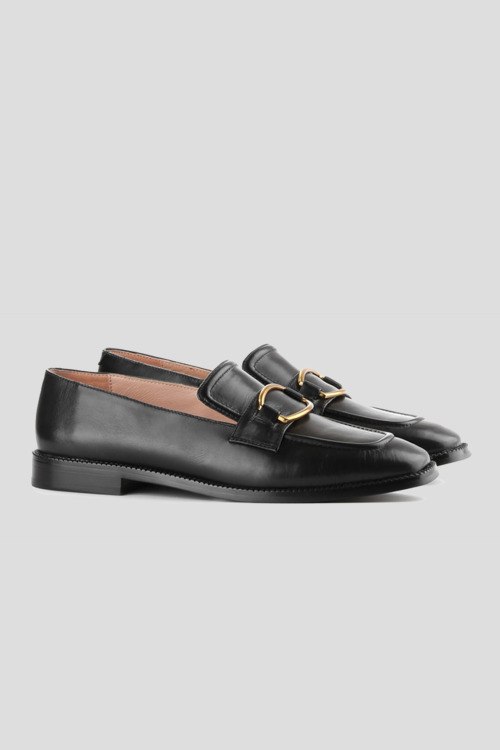 Детали: Женские черные лоферы из натуральной кожи от Le Berdes (Ле Бердес). Миндалевидный носок, спереди ремешок в тон изделия декорированный золотистой цепью, стелька из натуральной кожи, плоская подошва с широким блочным каблуком