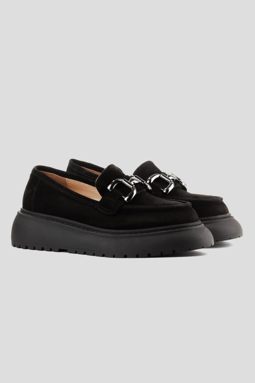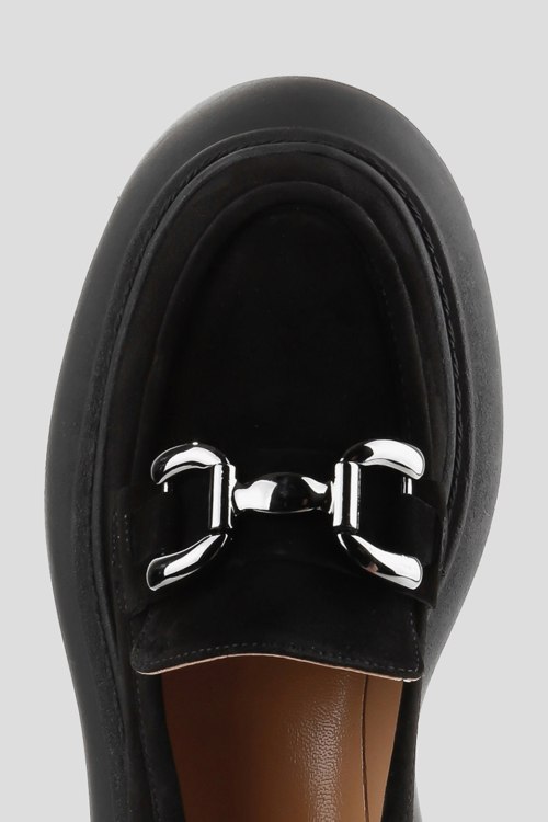 Детали: Женские черные лоферы из натуральной замши от Le Berdes (Ле Бердес). Миндалевидный носок, металлическая фурнитура спереди золотистого цвета, кожаная стелька, рельефная массивная подошва. Измерения: высота платформы: 5 см длина стельки: размер 35 (23 см), 36 (23,5 см), 37 (24 см), 38 (24,5 см), 39 (25 см), 40 (25,5 см), 41 (26 см)