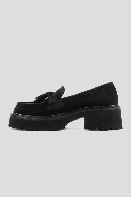 Детали: Женские черные лоферы из натуральной замши от Le Berdes (Ле Бердес). Миндалевидный носок, нашивка в тон изделия спереди, массивная подошва черного цвета.Измерения: длина стельки: размер 35 (23,5 см), 36 (24 см), 37 (24,5 см), 38 (25 см), 39 (25,5 см), 40 (26 см), 41 (26,5 см)