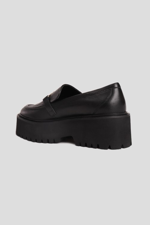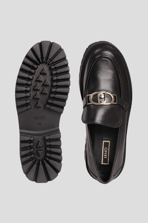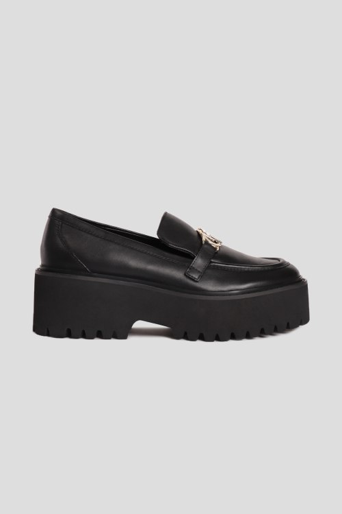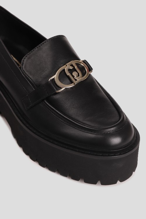 Детали: Женские черные кожаные лоферы от Liu Jo (Лиу Джо). Модель из гладкой кожи, металлический значок с логотипом, закругленный носок, массивная подошва, кожаная стелька. Высота каблука: 6.5 см, платформа: 4.5 см