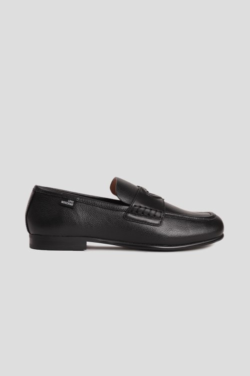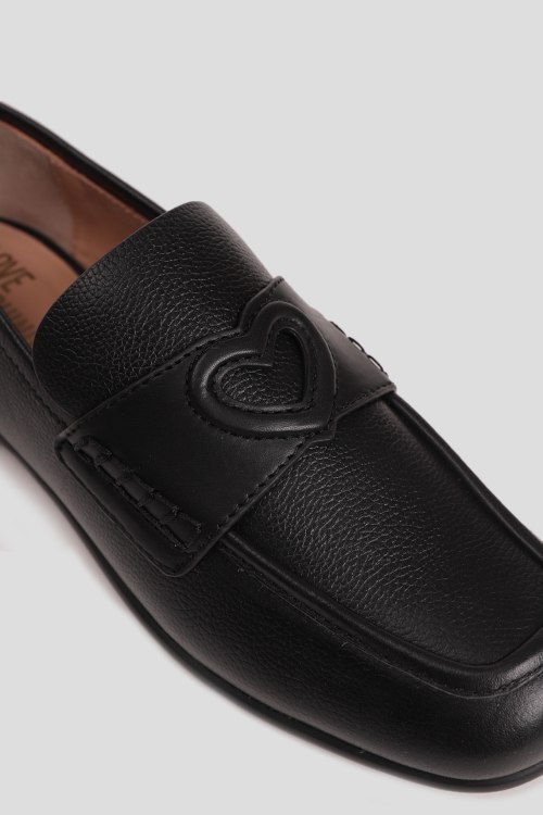 Детали: Женские черные кожаные лоферы от Love Moschino (Лав Москино). Модель из зернистой кожи, нашивка с логотипом сбоку, сердечко спереди, закругленный носок, кожаная стелька. Высота каблука: 2 см