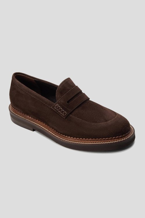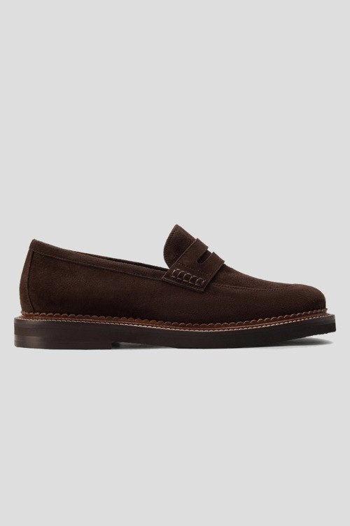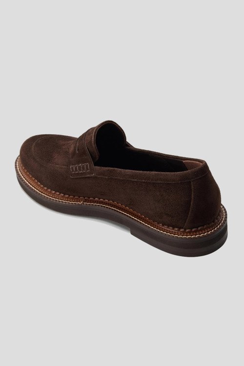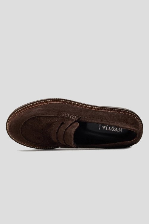 Детали: Женские темно-коричневые замшевые лоферы от Hestia Venezia (Эстиа Венеция). Миндалевидный носок, кожаная стелька, резиновая подошва