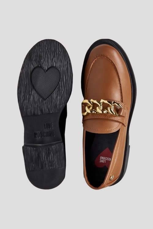 Детали: Женские коричневые лоферы из натуральной кожи от Moschino (Москино).Закругленный носок, металлический логотип бренда, толстая подошва, металлическая фурнитура. Высота каблука: 4 см Платформа: 2 см с мехом