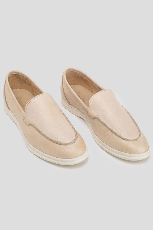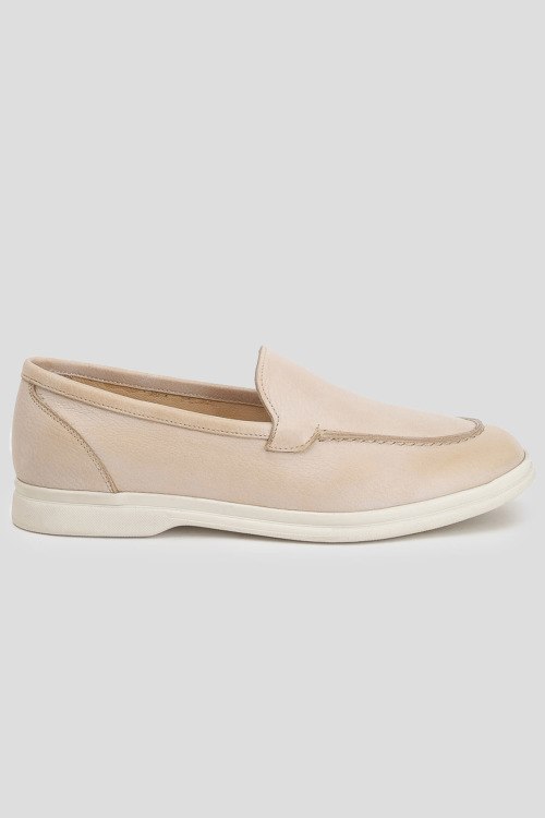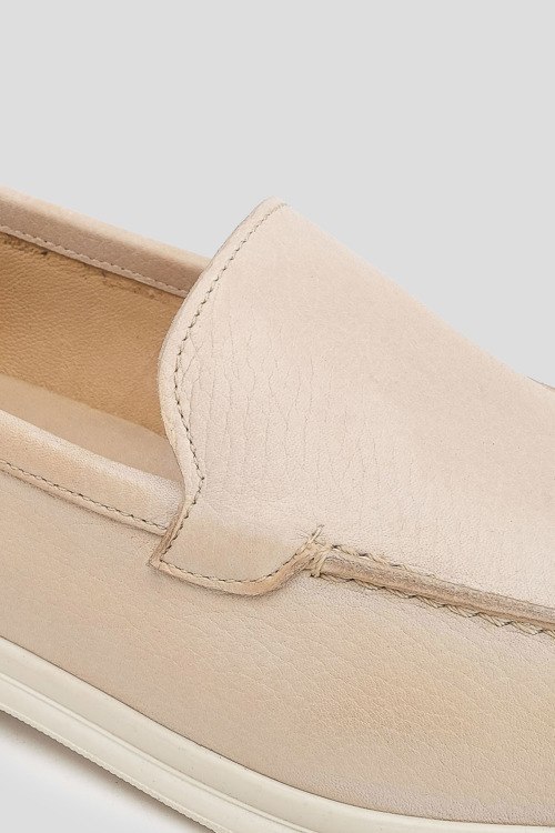 Детали: Женские лоферы молочного оттенка из натуральной замши от Brecos (Брекоз). Миндалевидный носок, кожаная стелька с логотипом бренда, контрастная подошва