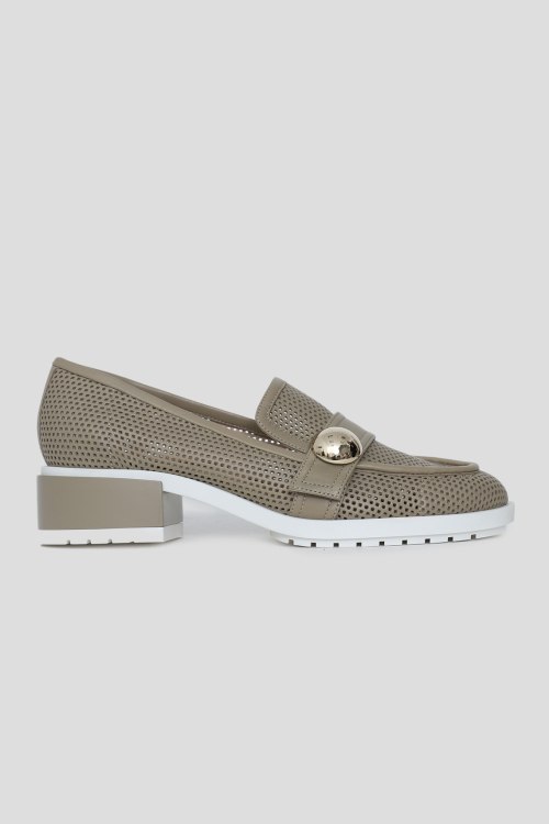 Детали: Женские серые лоферы из натуральной кожи от Giorgio Fabiani (Джорджио Фабиани). Дизайн с элементами перфорации, спереди ремешок с металлическим декором, закругленный носок, небольшой каблук. Измерения: высота каблука: 4 см (на размер 39)