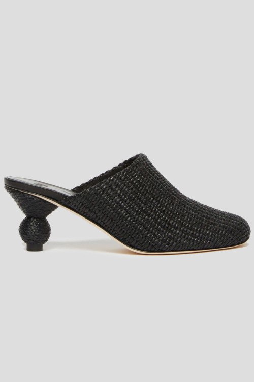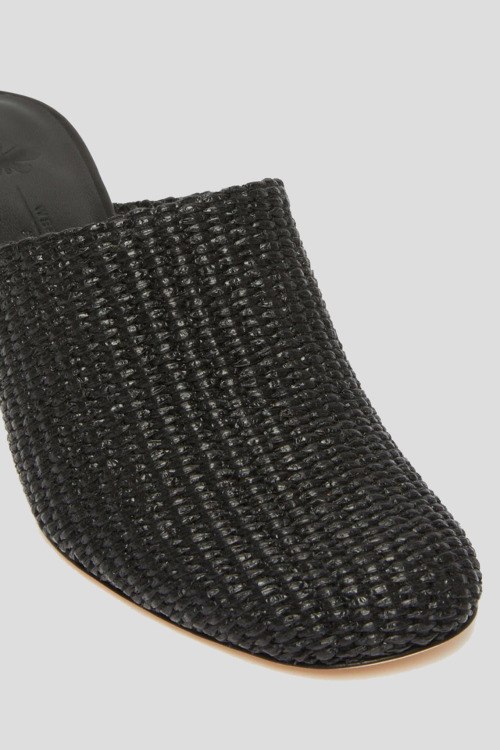 Женские черные мюли из хлопка и полиамида от Max Mara Weekend (Макс Мара Викенд). Закругленный носок, кожаная стелька с лого, плетенный дизайн, невысокий декоративный каблук