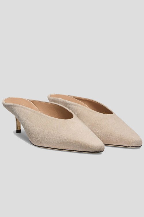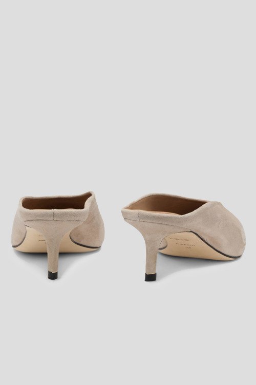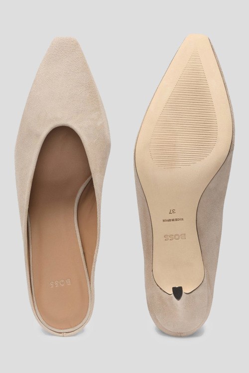 Детали: Женские кремовые замшевые мюли Charlize от Hugo Boss (Хуго Босс). Узкий носок, каблук-шпилька с логотипом ВВ, кожаная стелька. Высота каблука: 6 см