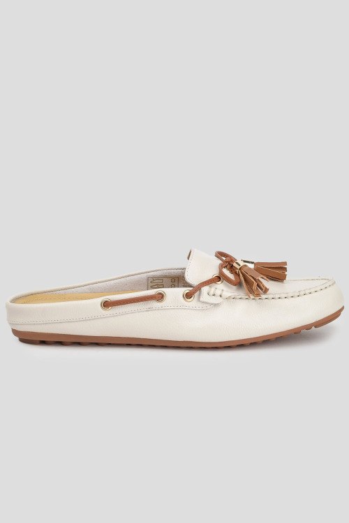 Детали: Женские кожаные мокасины молочного оттенка от Tosca Blu (Тоска Блу). Модель из зернистой кожи без задника, декор кисточками, закругленный носок