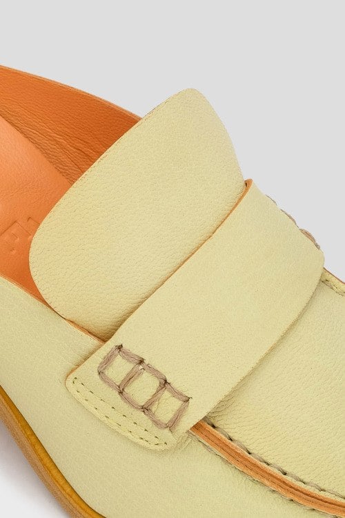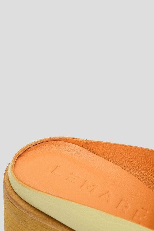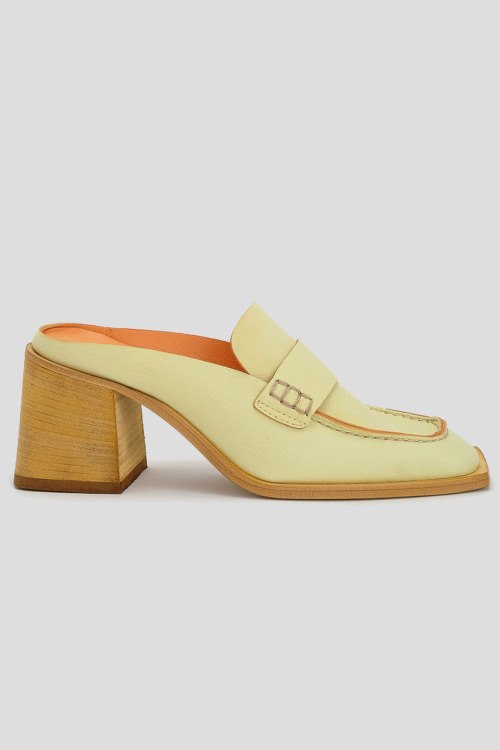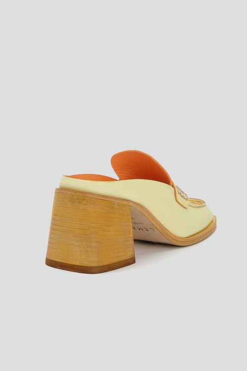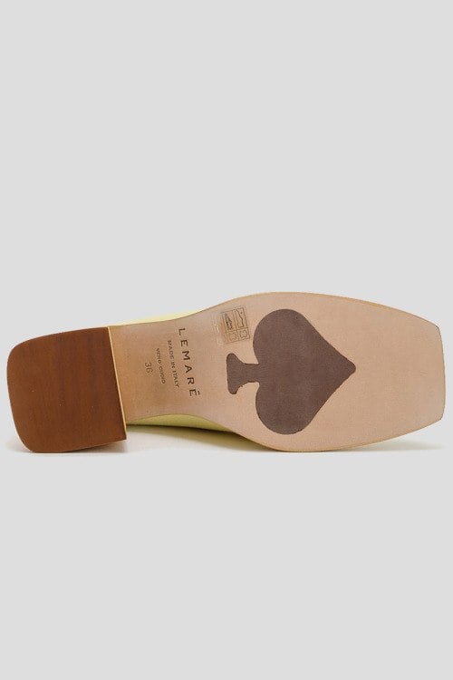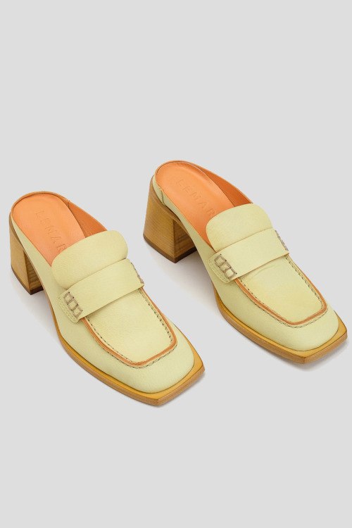 Женские лимонные мюли из натуральной кожи от Lemare (Лемар). квадратный носок, открытая пятка, кожаная стелька с логотипом бренда, широкий квадратный каблук
