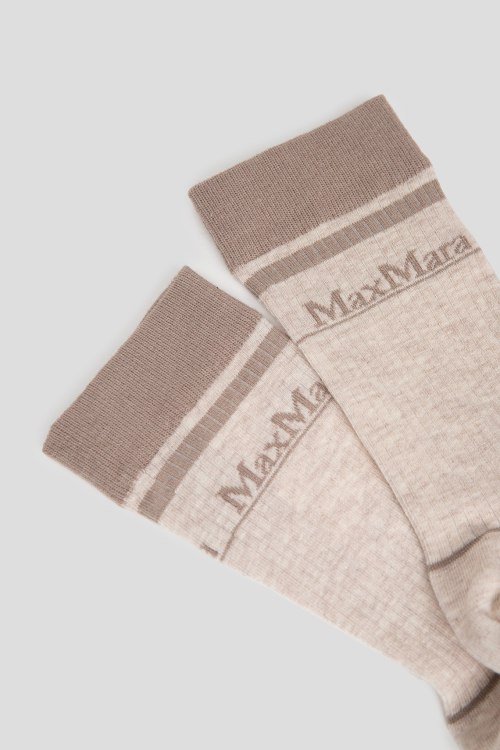 Женские бежевые хлопковые носки Gabarra от Max Mara Leisure (Макс Мара Лэжэ). Высокая модель, узор с логотипом