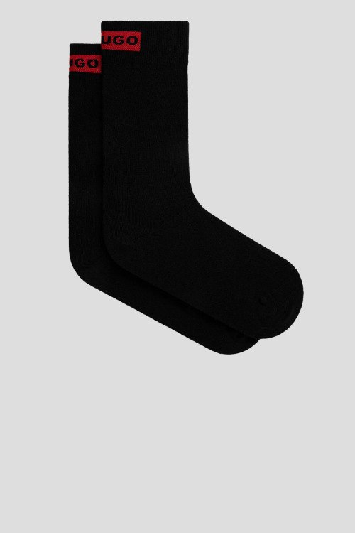 Детали: Женский набор черных хлопковых носков от Hugo by Hugo Boss (Хуго бай Хуго Босс). Высокая модель, вышитый логотип. В наборе 2 пары