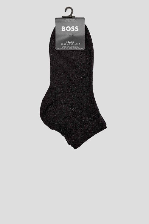 Детали: Женский набор черных носков от Hugo Boss (Хуго Босс). Короткая длина, дизайн с люрексом, вышитый логотип. В наборе 2 пары