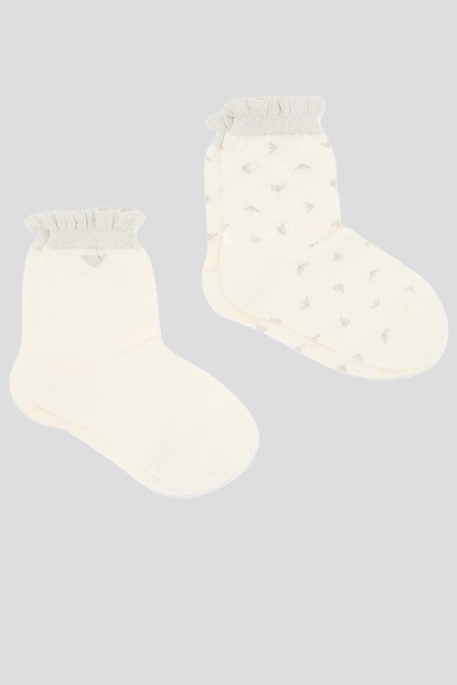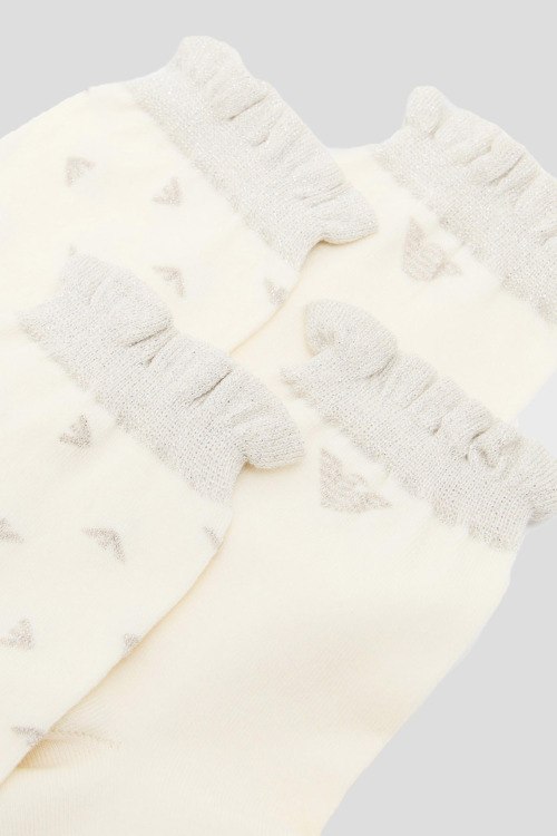 Детали: Женский комплект хлопковых носков молочного оттенка от Emporio Armani (Эмпорио Армани). Декор люрексом, вышитый логотип