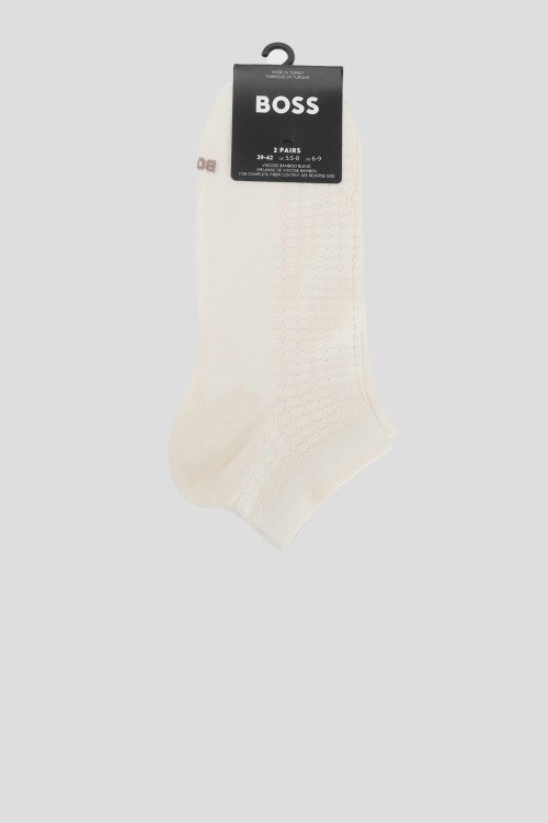 Детали: Женский набор носков из вискозы молочного оттенка от Hugo Boss (Хуго Босс). Короткий фасон, вышитый логотип. В наборе 2 пары