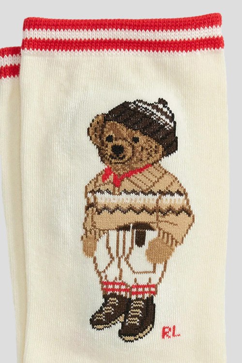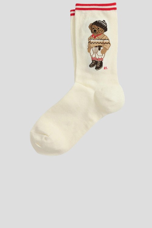 Детали: Мужские носки молочного оттенка из хлопкового микса от Polo Ralph Lauren (Поло Ральф Лорен). Высокая модель, эластичная резинка на манжетах, принт с логотипом бренда