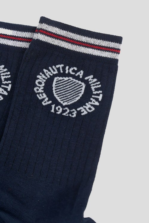 Детали: Женские темно-синие хлопковые носки от Aeronautica Militare (Аэронавтика Милитари). Высокая модель, вышитый логотип