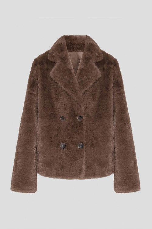Детали: Женская коричневая шуба из экомеха от Joop! (Йооп!). Двубортный фасон, отложной воротник, боковые карманы, застежка на пуговицы, коротка длина. Длина рукава: длинный, для размера 38 - 60 см, обхват груди: для размера 38 - 120 см, обхват талии: для размера 38 - 120 см, длина изделия по среднему шву спинки от горловины: для размера 38 - 61 см