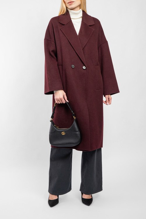 Женское бордовое пальто из шерстяного микса от Vicolo (Виколо). Двубортный фасон, отложной воротник с заостренными лацканами, боковые карманы, застежка на пуговицы, длина-миди. Замеры для размера M: длина: 113 см, ширина груди 58 см, ширина по талии 61 см, ширина по бедрам: 64 см длина по внутреннему шву рукава 38 см, ширина рукава 22,5 см.
