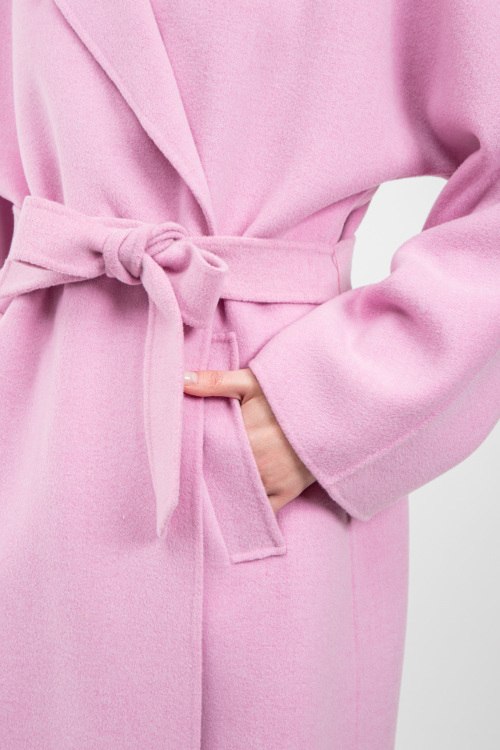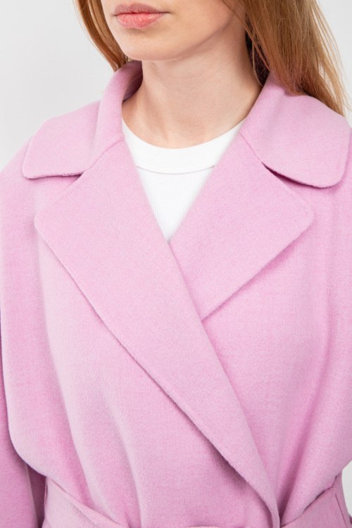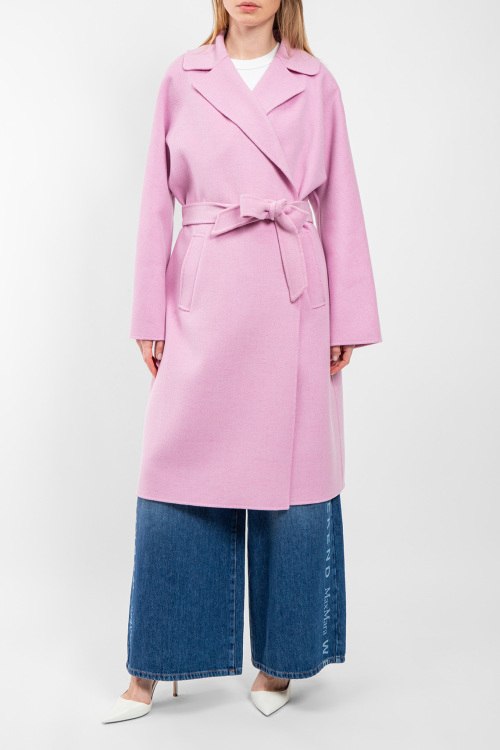 Детали: Женское розовое пальто Civada из шерсти от Max Mara Weekend (Макс Мара Викенд). Длина миди, отложной воротник, без застежки, пояс в тон изделия, прорезные карманы