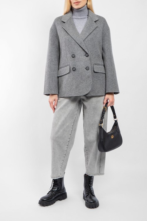 Женское серое шерстяное пальто от Clothe (Клозе). Двубортный фасон, отложной воротник, два кармана с клапаном, застежка на пуговицы, короткая длина. Замеры для размера L: длина: 70 см, ширина груди 55 см, ширина по талии 54 см, длина по внутреннему шву рукава 40 см, ширина рукава 21 см, ширина по плечам 54 см.
