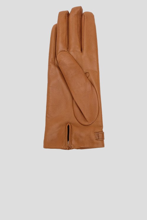 Детали: Женские коричневые перчатки из натуральной кожи от Coccinelle (Кочинелле). Однотонная модель, дизайн с ремешком, металлический логотип бренда
