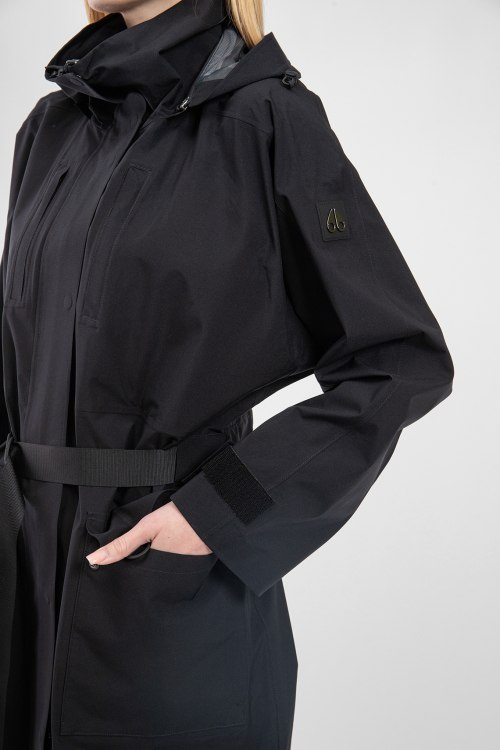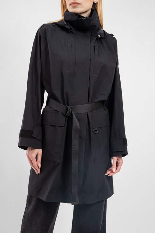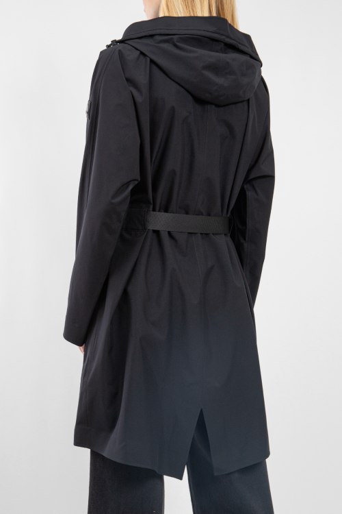 Детали: Женский черный плащ от Moose Knuckles (Мус Наклс). Съемный капюшон, высокий воротник, четыре кармана, в талии с поясом, застежка на молнию и кнопки, регулируемые манжеты, длина до колен. Размер на фото XS