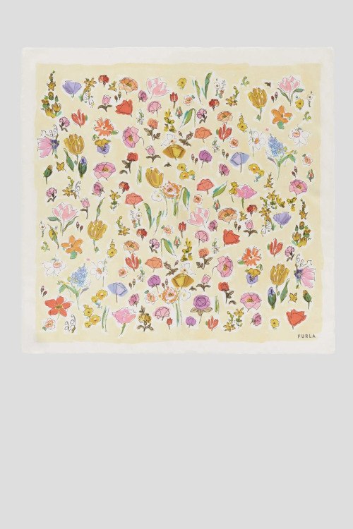 Детали: Женский бледно-желтый шелковый платок от Furla (Фурла). Принт по всей поверхности, принт с логотипом. Размер: 90 х 90 см