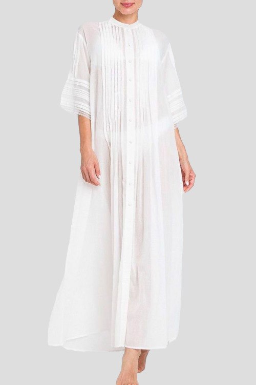 Детали: Женское белое платье из хлопка от TWINSET (Твинсет). Длина макси, застежка на пуговицы, короткие рукава, логотип бренда, декорировано кружевом