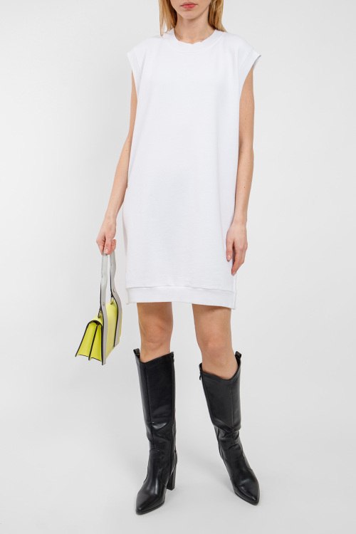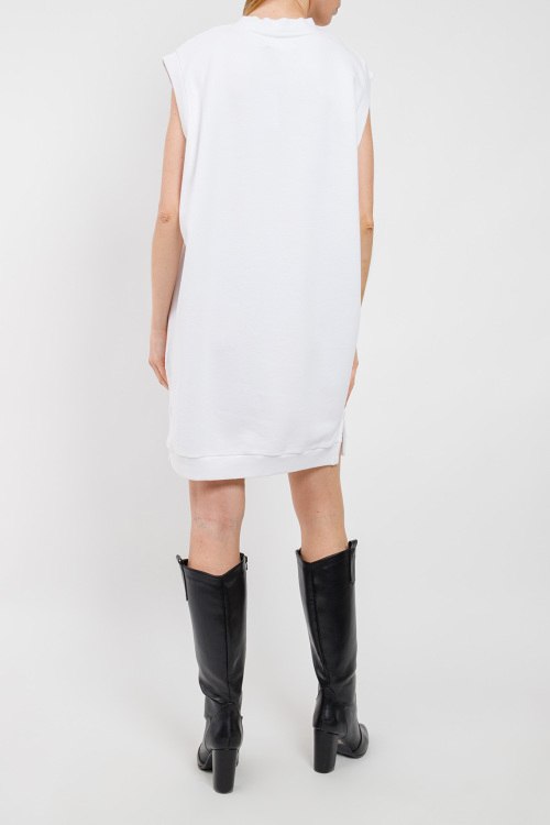 Женское белое платье из хлопка от Seafolly (Сифолли). Короткая длина, круглый вырез горловины, модель без рукавов, трикотажная резинка по низу изделия.