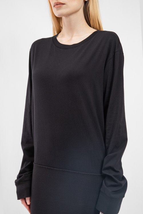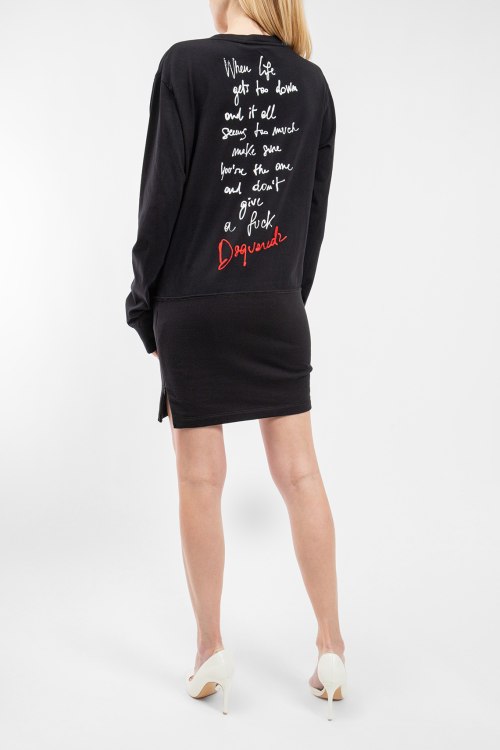 Женское черное хлопковое платье от Dsquared2 (Дискваред). Принт на спине, круглый вырез горловины, длинный рукав, короткая длина.